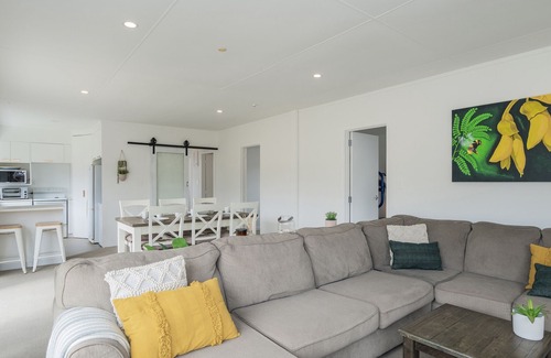 The spacious set-up at this Whiritoa holiday home allows ample room for family and friends to relax and unwind. Enjoy simplicity, relaxation and carefree living with modern comforts in a classic beachside bach... Whiritoa's Hidden Gem welcomes you!