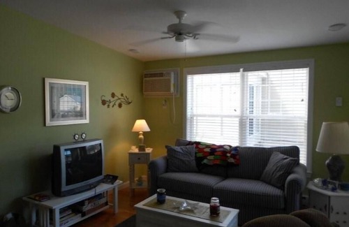 This charming cottage sleeps six people and has three gueen beds which includes a pull out coach in the living room. The bathroom has a granite sink and is spacious. The layout is a bit unigue with two sliders out to a sunny enclosed porch. This makes for a great eating area after a day at the beach or pool! this cottage is one not to be missed!