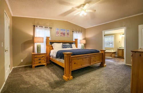 Head to the Sangre de Cristo Mountains for a stay at this spacious 4-bedroom, 3-bathroom vacation rental in Angel Fire! Nestled in a serene and private location with sweeping 360-degree views, this house provides a perfect getaway for family and friends. After a fun-filled day hitting the hiking trails, skiing at Angel Fire Resort, or exploring historic downtown Taos, return home to have a friendly ping pong competition in the game room barn or settle in beside the wood-burning fireplace.