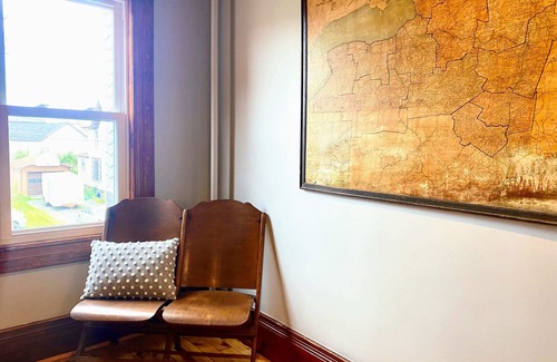 July and August price drop! Welcome to the spacious 2-bedroom St. Lawrence residence at the Dygert House. The St. Lawrence Residence includes two private bedrooms (one king bed; two twin beds), four-piece bathroom, kitchen, dining area, lounge and entertainment deck overlooking the backyard that offers a treetop view of downtown Clayton and the majestic St. Lawrence River. History is on showcase in this residence with a mix of preserved original and new hardwood flooring, bespoke antiques, stained glass windows, and specially curated art and decor. The St. Lawrence Residence offers many modern amenities including stainless steel appliances, full size washer and dryer, well equipped beverage cart with Keurig coffee maker, luxury linens and a 50-inch smart TV in the light-filled lounge.