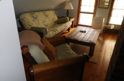 Block Island is a historic property in the 'Old Town', initially built around 1850, this property housed the General Store. Completely renovated in 1985 by the owner, amenities include a private entrance and bath, hard pine floors and a kitchenette, gas grill, air conditioning, wireless internet, and outdoor shower. Lawn chairs are set up under 2 maple trees for outdoor seating.