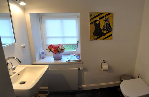 Underfloor heating and open fireplaces invite you to relax and unwind, even in winter. The living room is equipped with a stereo and satellite television, and there is also a television in the master bedroom. WiFi is available. The house has a spacious modern bathroom made of natural stone (Belgian granite) with shower and bathtub on the upper floor. On the ground floor there is another bathroom with shower and toilet and a third guest toilet.