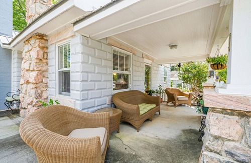 Mornings can be spent with that first cup of coffee on the front porch or in the backyard. The light-flooded living room has comfortable sofas throughout and a large TV. Spend cozy evenings watching a fun movie or playing board games around the coffee table. The adjoining dining room offers an inviting space to enjoy your meals while surrounded by lush plants and gorgeous furniture. The large kitchen has a breakfast table and when the whole group is together, the kitchen offers plenty of space to prepare a gourmet dinner, that may be served in the dining room. It's also complete with stainless steel appliances, offering a subtle modern touch. History buffs will enjoy exploring the area and visiting historic landmarks and the area's Cherokee heritage.