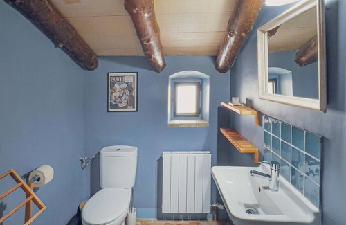 Experience the tranquility and silence of rural Catalonia in this beautifully restored old barn. This accommodation dates back to at least 1200 and has been transformed into a holiday home with great taste and respect for its history and ancient details. The calm, peaceful, and authentic interior design, adorned with some beautiful vintage advertising posters, will make you feel right at home. The accommodation is perfect for families with children.