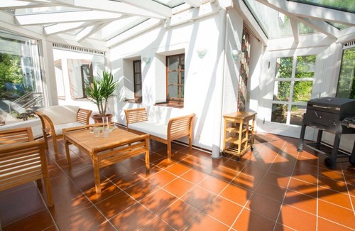 The former hunting and forestry lodge (built in 1922, completely renovated in 2014) is located in the middle of the forest (Hohes Venn-Eifel Nature Park) on its own property of almost 40,000 square meters, just a few hundred meters as the crow flies from the Eifel National Park. With three bedrooms and a large sofa bed in the studio, the holiday apartment offers optimal accommodation for up to 8 guests. An apartment right next door - and connected with a walk-through door - provides space for another 4 people; 2 "hobbit houses" opposite the winter garden offer 4 additional single beds. In total, up to 16 guests can stay overnight. Visitors enjoy the peace and quiet and breathe deeply: the location at 500 m altitude not only guarantees clean air, but also a beneficial microclimate. Just a few steps away crosses the “Eifelsteig”, one of the most attractive hiking routes in the region.
