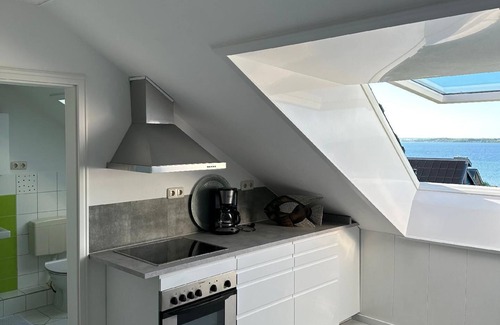 Inside, you will find a perfectly equipped flat that combines modern comfort with a cosy ambience. The kitchen is equipped with everything your heart desires, including a coffee machine and kettle for cosy mornings. The living and dining area is the ideal place to enjoy meals together or simply relax. The bedroom with a comfortable double bed promises restful nights. The highlight: underfloor heating throughout the flat provides cosy warmth. The modern shower room also leaves nothing to be desired.