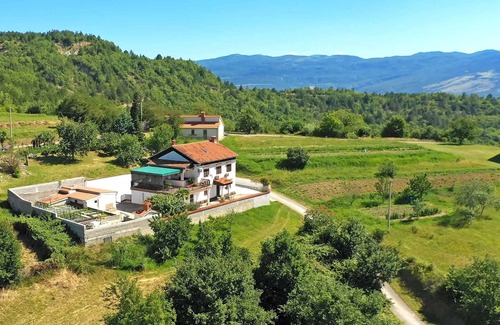 The holiday apartment is located in a detached single-family home built in 2000 and is furnished in a functional and typical country style. The property is located on the outskirts. Also due to the view over a panorama from the property and its quiet, sunny and secluded location the domicile is popular. Available for your exclusive use: terrace and garden furniture.LocationGradinje, 200 m above sea level. The holiday apartement is located on a 114 sqm enclosed garden plot with flowers and trees, bordered by a fence and a wall. The landlord lives only occasionally in the house, but uses a seperate entrance. Access is via a side road (asphalted). Parking is available on the property. Specialair conditioning.Facilities: internet access (WLAN) and washing machine. TV reception takes place via satellite. Dogsnot allowed. DistancesShopping 5 km, restaurant 5 km, town center 15 km. airport in Pula 65 km. In summer: Adriatic sea 39 km in Mošćenice (beach 39 km in Mošćenice featuring gravel, stones, rocks and bathing plateaus). DivisionHoliday apartment, 1 floor, 4 rooms (including 3 bedrooms), 50 sqm, in total 6 beds. RoomThe entrance to your holiday apartment is located on the 1st floor