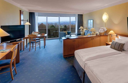 Your vacation object: The Holiday apartment is located in a holiday village and is surrounded by open garden property with meadow, trees and bushes. In a fantastic location directly above the Rottal Terme and in the heart of rural Bad Birnbach, the Aparthotel is your ideal starting point for an individual holiday. The hotel is in a prime location in Bad Birnbach and is the special holiday destination for everyone who is looking for peace and quiet but still wants to live centrally. All apartments have a size of 50 m² and face the sunny south side.