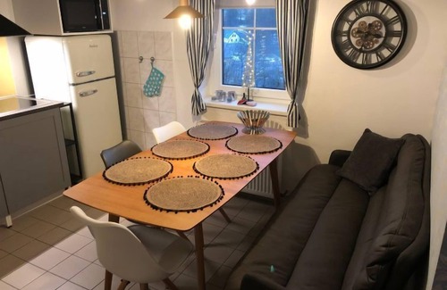 4-room house 100 m2 on 2 levels. Bright, comfortable and cosy furnishings: open living room with satellite TV (flat screen). Exit to the terrace. Kitchen (4 hot plates, dishwasher, toaster, kettle, microwave, freezer, grill, electric coffee machine) with dining table. Sep. WC. Upper floor: 3 rooms, each room with 1 double bed. Bath/WC. Small terrace. Terrace furniture, barbecue. Facilities: washing machine, dryer, children's high chair, baby cot. Internet (WiFi, free). Please note: suitable for families. Non-smoking house. Maximum 2 pets/ dogs allowed.