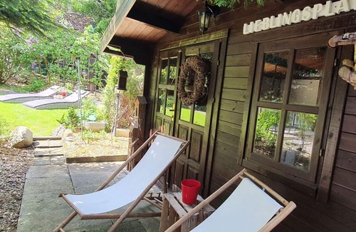 The holiday home in the fairytale forest is just for you. Completely fenced property with a forest character. Very quiet area. Ideal for relaxing. Whether dreaming in the hammock or reading a good book on the lounger. Here you can let go and recover from everyday stress. Are you traveling by car? No problem, because there is a free parking space for your car right in front of the house. The holiday home is not far from a swimming lake. 5 minutes walk and you can go swimming for free. Supermarkets, bakeries, gas stations, etc. are not far away.