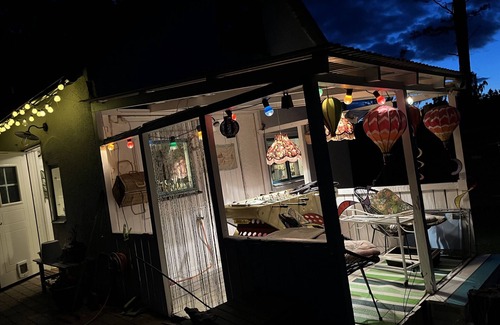 Dry toilet, outside shower, canoe