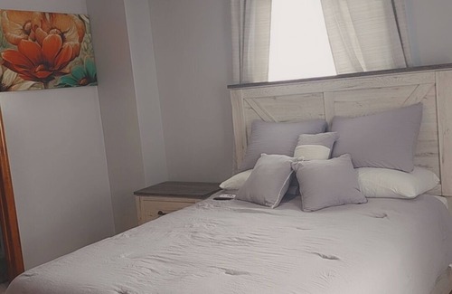 This home away from home space is located in close proximity to JFK airport. This comfortable & clean three bedroom, two bath, second floor apartment would appease any group of 8. The master bedroom has a queen size bed with full bathroom ensuite, blackout curtains, & smart tv. The two remaining bedrooms each has a double and a twin bed. The bedrooms have blackout curtains as well as a smart tv. The full kitchen has a stainless steel refrigerator, glass top stove and microwave, along with toaster, coffee marker & electric kettle. The living room and dining nook easily seats 8 guests. The bathrooms are equipped with hand & body soap, along with a set of towels for each guest to use during their stay. This home away from home will make your trip to NY just a bit more special.