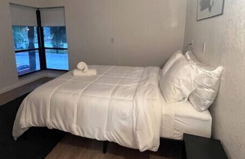 Escape to a haven of comfort and style! This cozy yet spacious retreat offers cleanliness and modern elegance. Unwind with big beautiful TVs in the living room and master bedroom. Bask in the tranquility of picturesque window views. The apartment complex pool adds a refreshing touch to your stay. Conveniently located near Disney, Universal, and Downtown Orlando, you're perfectly situated to explore the best of the area. Your ideal getaway for relaxation and adventure!