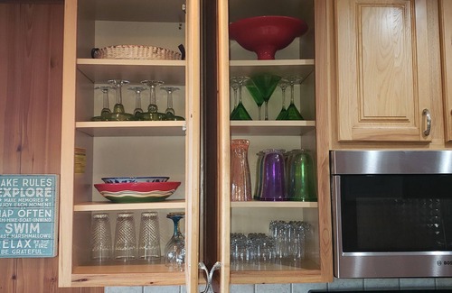 One of the best locations on Silver Lake -- not Upper Silver or the creek. We're located on the quiet side of lake away from traffic. Located close to Mac Woods dune rides. Mooring for boat, shallow lake front that is great for swimming with small children, outdoor, gas grill, lawn chairs, patio chairs and table. Lakeside of cottage is all sliding glass doors with unobstructed view of the lake. Great place to enjoy coffee by the water or inside with great view of the water. Enjoy 60' of Silver Lake frontage with the best views in all of Silver Lake area. No dirt or paved road to cross. Option to rent a second cottage on the same property (VRBO Listing #816965 -- Vrbo 816965). Both have views of the dunes and lake, a fire pit on the beach and a private dock. Bring your boat and dock it here all week. (Or rent a pontoon boat / kayaks / stand up paddle boards on the lake).
