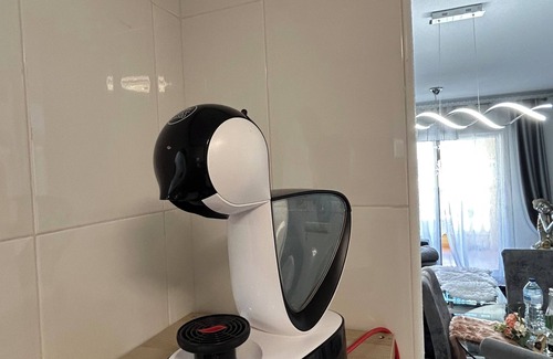 Fully equipped kitchen with refrigerator, washing machine, microwave, toaster, water heater, induction hob.