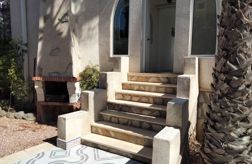 This beautiful house has an entrance with a garden, parking and an outdoor pool... It has two rooms, each of them two 90 cm beds joined to make a 180 x 200 bed, the rooms have windows with excellent light input, one with a view of the garden and the other overlooking the pool, includes bedding, have air conditioning and ceiling fan. The house has a bathroom with a bath and shower. A large living-dining room with two sofas and one is an Italian-style sofa-bed, TV, fireplace,wiffi ,air conditioning, a large dining table and another table on the covered terrace with chairs. The kitchen has the necessary appliances for your pleasant stay. In addition to the gardens that surround the pool and the house, it has a pleasant covered terrace to enjoy breakfast outdoors. In the pool area there is a complete bathroom with a shower for greater comfort without having to enter the house....