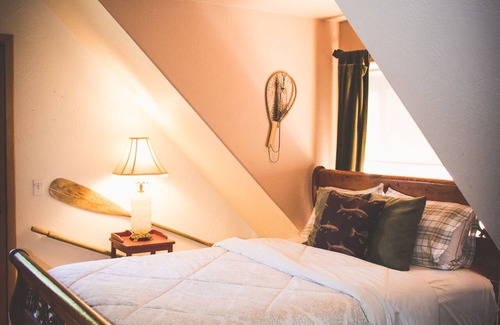This 4,500+ sq. ft. Canadian Spruce home is warm and inviting to large groups and families. The Coca-Cola themed kitchen is decorated by a collection of Coca-Cola antiques found over the years, items that can only be seen here! There will be no problem making conversation at the dinner table with the endless conversation starters scattered across the top of the cabinets.