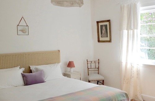 Come for the quietude and enjoy the sweet vintage furniture, comfy linen sofas and beds with crisp hotel quality sheets. Take the time to appreciate the original artworks. Have breakfast in the morning sun on the verandah, and enjoy a delightful private verdant view. Potter around the pretty country garden, have lunch sitting in the outdoor setting, and light a fire in the fire pit in the evening, all with a veggie patch that you can help yourself to. You will be walking just three minutes, down a leafy country street to the pubs, restaurants and golf course, so leave the car parked for your whole weekend, go for a wander, and take some deep breaths of clean air.