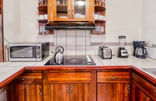 After a day of fun, head inside to use the full kitchen's stainless steel appliances and counter space to prepare a delicious meal for everyone to enjoy at the dining table with seating for four. Of course, you can always take it out to the patio to savor an al-fresco dining experience. Afterward, host a movie night with friends in the spacious living room with ample seating. When it's time to call it an evening, you'll have two well-appointed bedrooms to enjoy - good thing too, because with so much to do, you'll appreciate such deep and rejuvenating sleep! The Pueblo Real area stretches alongside the protected Isla Damas mangrove and wildlife sanctuary with walking trails where you can find monkeys, sloths, iguanas, birds, anteaters, and fish.