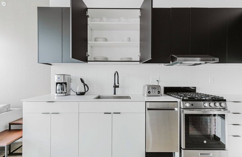 Thoughtfully designed with bespoke finishes, modern furnishings, and a fully equipped kitchen, you’ll enjoy that “I’m home” feeling with this Blueground apartment. Whether you’re lounging in your pretty living room streaming the latest and greatest entertainment on the smart TV or premium wireless speaker, or getting some well-earned rest on the superior quality mattress with luxury linens, you’ll fall in love with everything this Fulton Market District apartment has to offer. This apartment also offers in-apartment laundry.
