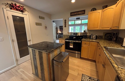 Unwind on the wrap-around deck, complete with a hot tub and inviting outdoor furnishings, or whip up a delicious meal in the fully equipped kitchen. With a gas grill and private washer and dryer, every comfort is at your fingertips.