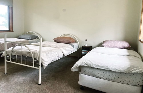 There’s not a soul within cooee distance and the entire house is yours with five peaceable, handsome bedrooms to choose from and a smorgasbord of varying sized beds, sleeping up to twelve.