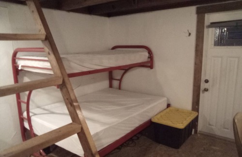 This 2 story off-grid, dry cabin (dry means there is no running water) is within cell service range and has a full upstairs complete with a balcony. The cabin has lots of windows for safe wildlife viewing and enjoying the breathtaking mountain views. Downstairs has a bunkbed with a twin & a full size mattress, Kitchenette, dining table and large covered porch. The upstairs features 2 queen beds and cabinets for storage. 2 outhouses are available 20 steps from the cabin.