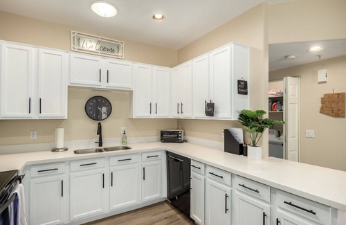 This wonderful 3 bedroom, 2 bathroom townhouse is located in an all single story, quiet complex convenient to dining, shopping and entertainment. It is newly renovated with brand new appliances, a fireplace, private outdoor patio with BBQ, and community pool and hot tub. There is a large great room with a dining table for 6. The kitchen is open with tons of counter space.The master bedroom has a HUGE walk in closet, private bath and king size bed. The 2nd bedroom offer a queen bed and shares a bathroom with bedroom number three. This bedroom has two sets of bunk beds. You can also view our economical listing on FURNISHED FINDER minus many of the fees.