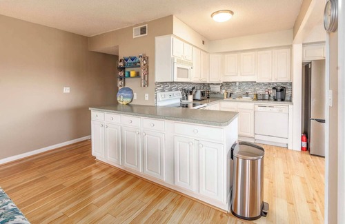 Welcome to Miles Away! This inviting condo features a Primary Queen bedroom with an ensuite bathroom for your comfort. The second bedroom includes a bunk bed with a twin on top and a full on the bottom, perfect for families or groups. An additional full bathroom is conveniently located in the hallway.