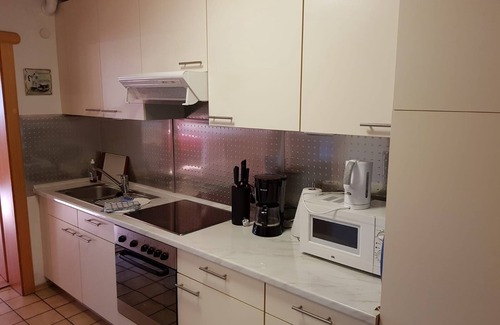 Fitted kitchen with 4-ring ceramic hob, oven, espresso / coffee machine, microwave with grill, toaster, etc.
