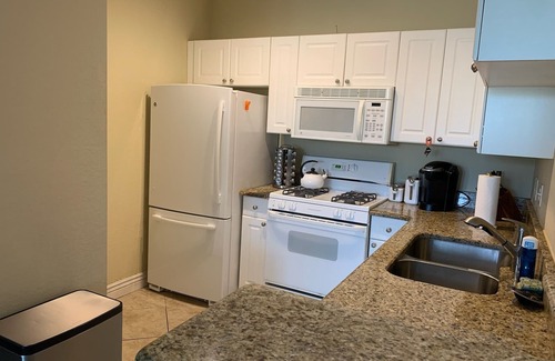 This beautiful 2 bedroom condo is full of great details for you to enjoy! Both of the bedrooms have King sized beds with Luxury Italian Bedding and 55 inch TV's. The living room has an 80in Tv, and a heated Massage chair to relax and unwind in, and a sleeper sofa. The mini office space is set up with two work stations, 1 Computer and 4 monitors, Great for working at home. The kitchen has all you need.