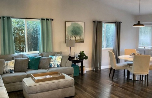 This house is the most comfortable and welcoming home around. Just 5 minutes off Hwy 5, this home has every comfort and amenity you can image for a restful stay. After relaxing in the easy-chair in front of the fire place, now you're ready to rest in your 14” mattress king bed in the master suite. The other 2 rooms are also equipped with pillow-top mattresses for your friends or the littles. Warning, the backyard is 200 feet from Hwy 5, so if you're a light sleeper, this might not work for you. But you will miss a treat and all this home has to offer.