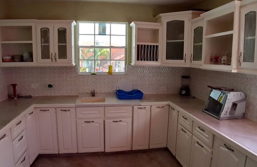 5 minutes walk from Speightstown and the beach, a quiet and safe neighbourhood. The apartment has air conditioning in the living/dinning rooms and fan's in the bedrooms. There are patio's at the front of the apartment and one at the back with access to a generous garden, were you can pick your own fresh fruits and veg.