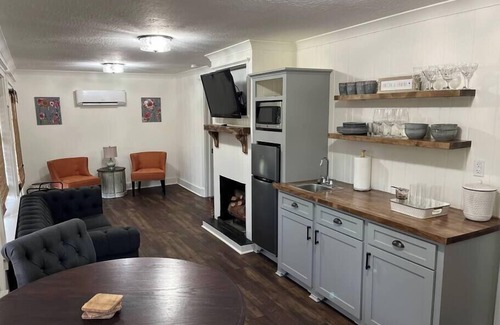 Just 3 blocks from downtown, this cozy cottage is a perfect place to relax and listen to the birds. It features a screened in porch and back deck, firepit, hammock, and shared pool (shared with our bed and breakfast next door). It boasts a unique split design with one bedroom and bathroom downstairs and two bedrooms and one bathroom upstairs. We also offer a golf cart rental for our guests.