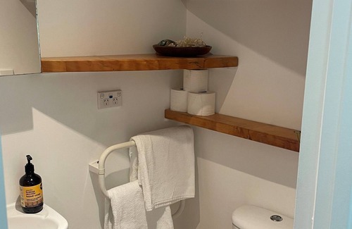 Inside, the cottage boasts a separate bedroom with doors that open out to a quaint back deck. The lounge offers a large couch, which makes it ideal for hunkering down and watching a movie in the evening. There's a dining space, as well as a well-appointed kitchen. Eat out, order in food or cook up a storm in the kitchen - the choice is yours! The Cottage is a quiet, romantic space that's perfect for couples.