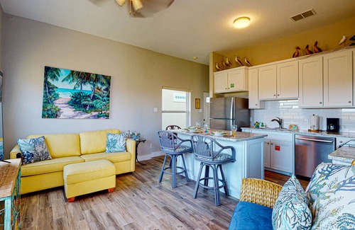 Coastal Soiree is a large, comfortable home in town, located 0.7 miles to the beach, 1.6 miles to restaurants, shopping and nightlife. This home is built on three levels with the main living-dining-kitchen on the third level with unobstructed panoramic Gulf views from the inside and under the covered balcony. Feel the island vibe inside with marine life décor in bright colors carried throughout as well as new furniture, artwork and kitchen.