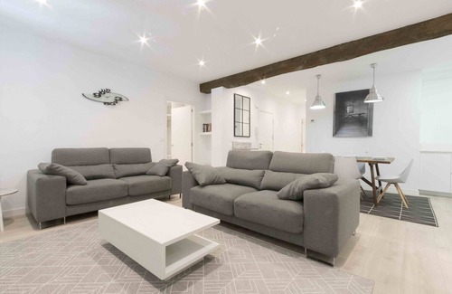 Recently reformed apartment, located in the heart of San Sebastian´s Old Quarter. In a first floor of the Constitución square, the apartment has three bedrooms, two of them with double bed and the other one with two single beds. It also has two bathrooms, both of them with shower. The apartment has a spacious living-dinning room area and free Wi-Fi.