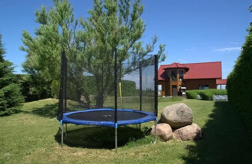 On the spacious property, in addition to play facilities (including a children's trampoline) and a garden pond with a boundary, there is also a year-round outdoor jacuzzi that can be heated to 38 degrees Celsius. A children's water alarm is available.