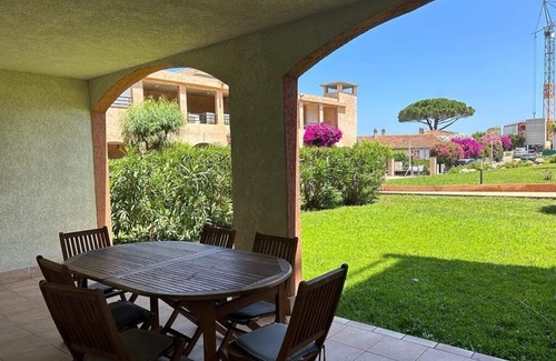 In a recently built luxury residence with swimming pool in residence, this comfortable apartment in ground garden is conveniently located near the marina, shops and the beach (150 m) Scaffa Rossa, beach walk .