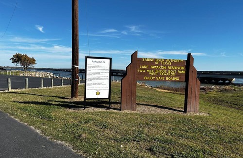 Walk one block to lake shore of Tawakoni lake.