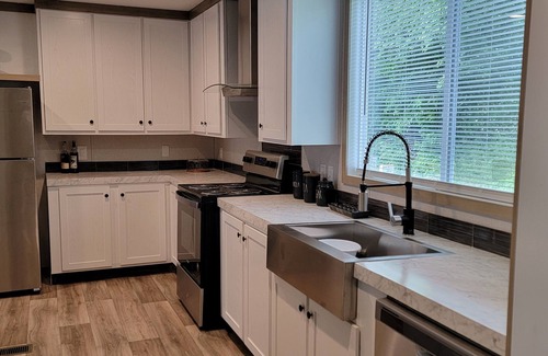 Beautiful, modern, farm style three bedroom, two bath lake house. Located in quiet lake community. Large common area that opens into the kitchen. Plenty of room for entertaining. Natural light throughout. Minutes to Green River Marina, site one boat ramp, Columbia, Greensburg, and Campbellsville University. Tons to do from nature trails to kayaking. Perfect get away for all lake lovers. Gravel drive with enough room for vehicles and boat. Please note that we are making several improvements to the outdoor area. Please be patient while we complete this process. Check out our numerous five star reviews! Photos attached. If you’d like detailed reviews, I’m happy to provide those :)