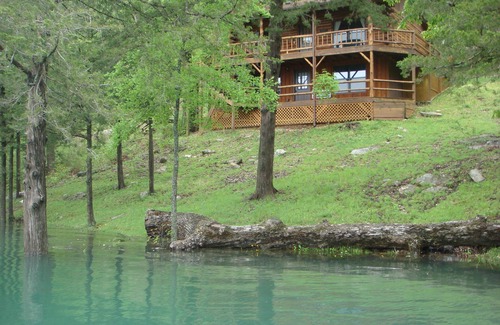 Beaver Lake Cabin directly on the waterfront of Beaver Lake, Eureka Springs, AR. with boat dock/slips/swimming/fishing/sun deck. Two story log cabin sleeps 8 comfortably with a Max of 10. *Note* To access lower level you must use an outside stairwell.