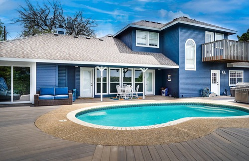 There is no better lakefront home to create amazing memories with family & friends. The bluest water you've seen in Texas with 180 degree views of Lake Belton. Walk down the trail to private sandy beach water access. Lay out in the sun by the pool or grill out your favorite meal. Enjoy indoor and outdoor dining plus a large family room. All designer remodeled bathrooms, living space and plenty of beds to bring everyone. Just bring a towel. Swim and lake access at your own risk, no lifeguard.