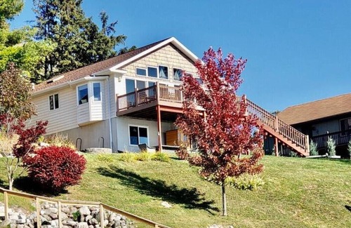 This beautiful LAKEFRONT home enjoys the best views of award winning Sage Lake, which topped Michigan's Torch Lake as Michigan's top inland lake! The all sports lake is 780 acres, has a max depth of 80 ft and is surrounded by scenery. The lakefront area in front of the home is sandy for several hundred feet. Pontoon rental optional. Many amenities offered!