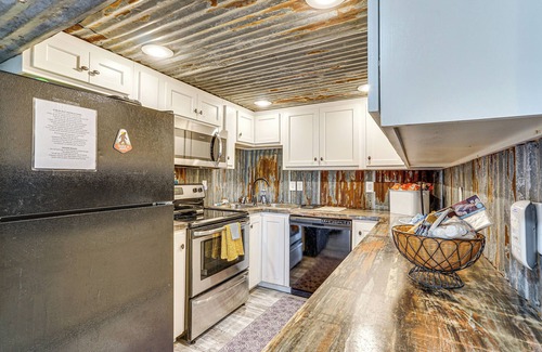 Get ready for lakeside living when you stay at this Rocky Mount property featuring 3 on-site vacation rental cabins. You’ll have the choice to stay in the main house that offers 6 bedrooms and 2 bathrooms, or one of the three 1-bathroom studio cabins. With direct access to the Lake of the Ozarks and access to a dock, rent a boat to spend all day on the water or book a tee time or explore surrounding nature trails. End each day grilling on the patio while stargazing with friends and loved ones.
