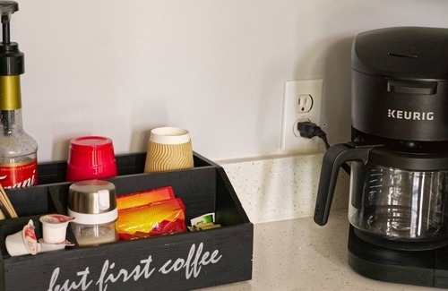 This space sleeps 4 guests comfortably, as you have the entire 40 ft container. You have your own private living space with 2 bedrooms, a bathroom, living and kitchenette area. The main bedroom contains a queen size bed, electric fireplace and a 43” Roku TV. The second bedroom contains a bunk bed with 2 twin mattresses. The living area has a small couch, electric fireplace and a 43" Roku TV. The kitchenette has a sink, coffee maker, Keurig coffee pods, microwave, toaster oven, refrigerator, electric double countertop burner, utensils, grilling tools, small pots and pans, beer and wine opener, can opener and paper goods. The container features beautiful floor to ceiling windows, and a deck that serves as a common area where you have plenty of space to enjoy the outdoors. You will also have access to our cozy fire pit and barbecue where you can sit back and relax after your long days on the lake. The property is complete with a custom outdoor water feature that you can step into to cool yourself off!