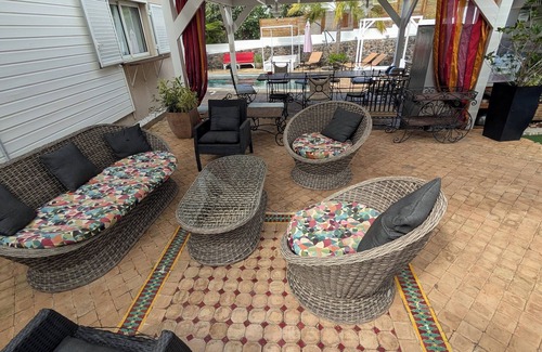 With an ideal location in Mont Roquefeuil it is a large house of 180 m² (classified 5 stars) and an apartment of 45 m² (classified 4 stars) full of charm and peace located a few minutes drive from the seaside resort of Saint-Gilles-les-Bains close to all shops (1 min walk from Score Express) in an area renowned for its sunny micro climate.