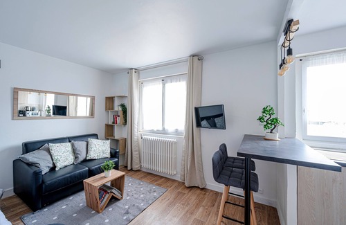 The studio is ideally located in Poissy in the hypercenter, 3 minutes walk from the train station, in a very pleasant environment in a secure and quiet condominium, while being close to the lively life of the neighborhood. Come and enjoy the ideal location of the apartment, close to Paris while being close to nature with the Saint Germain forest. You will be able to benefit from the proximity of all the essential businesses but also of stores, restaurants, bars, market...