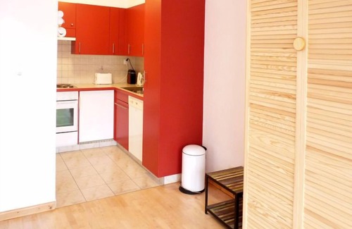 The kitchen is equipped with a refrigerator, a dishwasher, a microwave, and cookware. And there's a washing machine, so you can even pack a bit lighter.