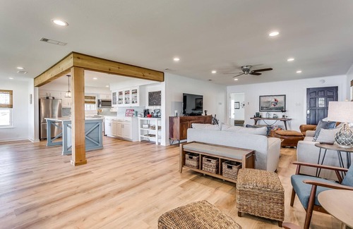 The FishCamp@PK is our beautifully restored home steps away from the water. It offers all the amenities you could ask for. The main house has 3 bedrooms and 3 full baths with a huge kitchen, family and dining room. The kids will love the bunkhouse and arcade room. Walk out the back door onto the covered porch to enjoy your morning coffee or watch the fabulous sunsets. Enjoy the beach entry (no steps) and lighted fishing pier. A boat ramp is located 300 yards away for you to put your boat in the water.